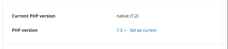 Valitse alasvetovalikosta haluamasi PHP-versio. Klikkaa sen jälkeen ”Set as current” -painiketta.