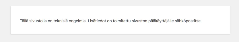 ”Tällä sivustolla on teknisiä ongelmia. Lisätiedot on toimitettu sivuston pääkäyttäjälle sähköpostitse.”
